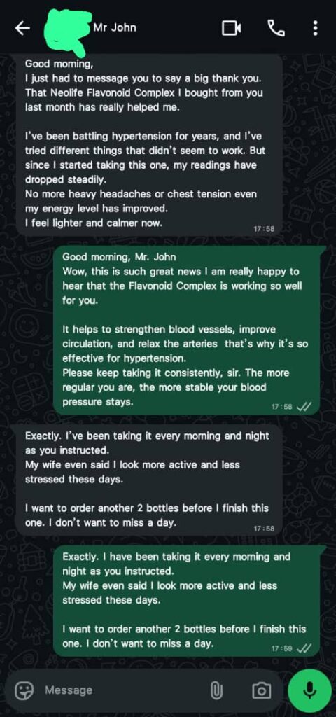 I lost my elder brother to high blood pressure last year, so I’ve been very cautious. After using Flavonoid Complex for just 3 weeks, my BP readings dropped to normal and I feel lighter and calmer. This supplement is now part of my daily life.